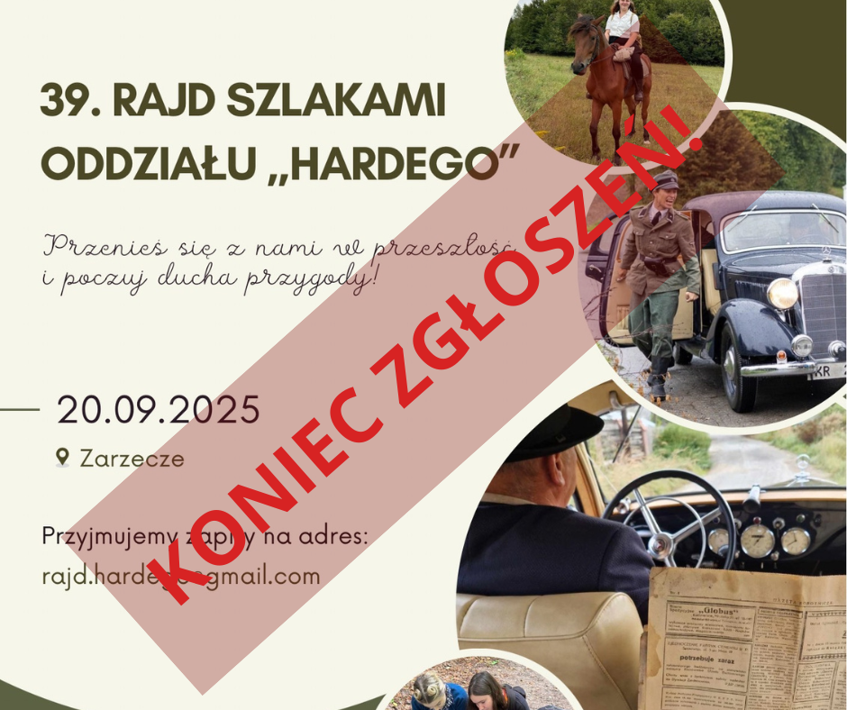Wobec wypełnienia (z naddatkiem) limitu drużyn, zakończyliśmy przyjmowanie zgłoszeń na 39. Rajd „Hardego”!